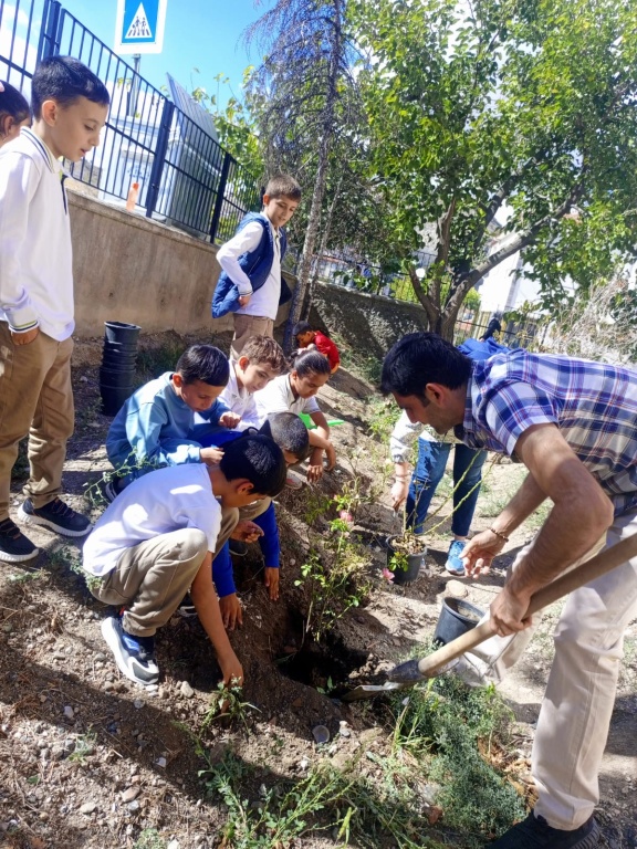 Öğrencilerimiz, öğretmenleriyle birlikte fidanları toprakla buluştururken çevreye olan duyarlılıklarını gösterdiler. Doğayı korumanın ve yeşil alanları artırmanın önemini yaşayarak öğrenen öğrencilerimiz, geleceğe nefes olacak bir adım attılar.